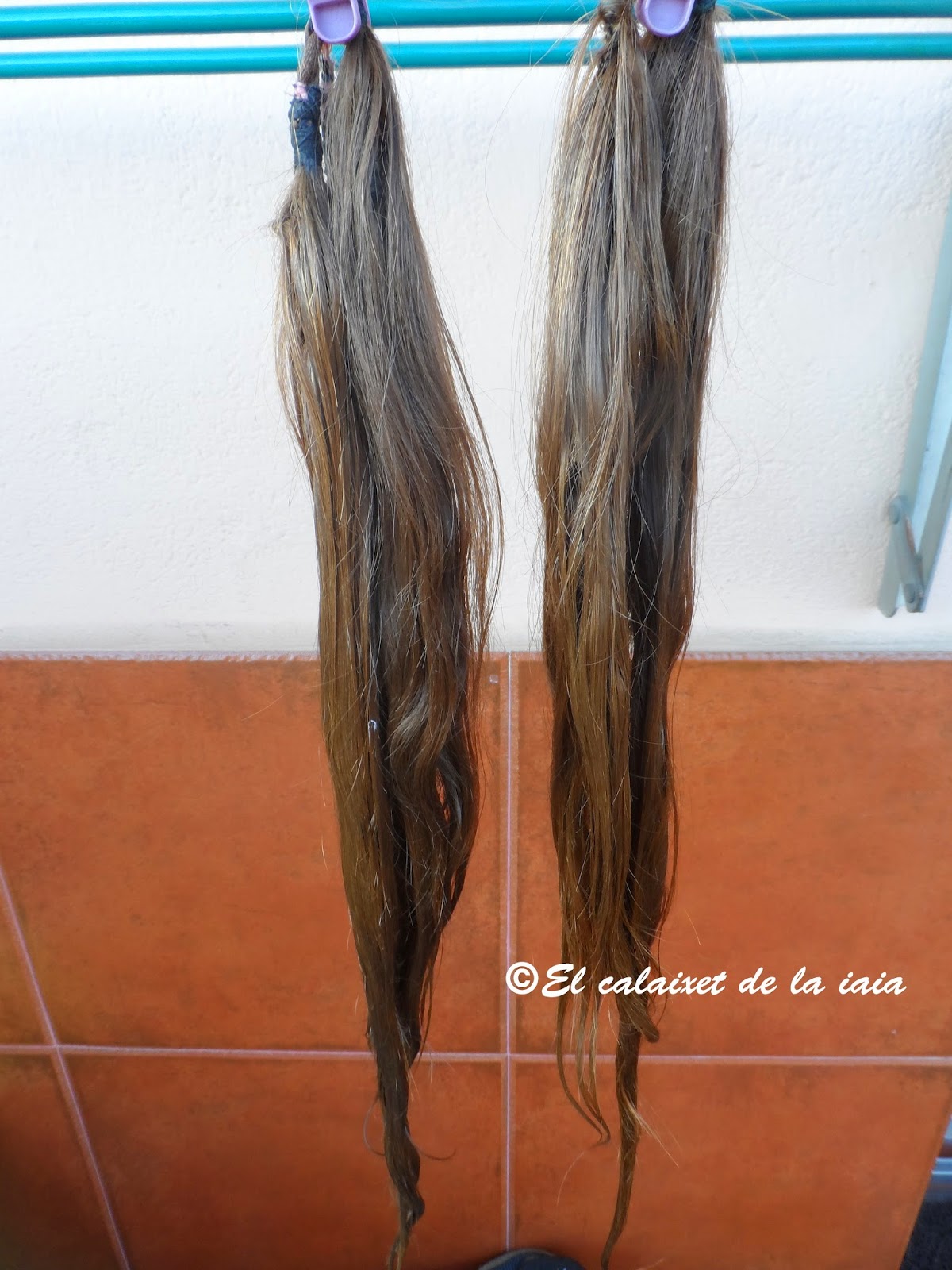 Ya están limpias guardadas y dispuestas para el próximo uso. Me preguntaban el otro día donde compro yo las mallas, peero, todas las mallas que tengo son de nuestro pelo, no he tenido necesidad de comprarlo nunca, y ahora, cómo tenemos muchas mallas, lo donamos, porque no tengo canas, jamás me he teñido y es pelo natural, pero en la zona de la calle San Vicente y Avda. María Cristina, es donde siempre hemos llevado nuestro cabello, para confeccionar las mallas y sé que allí también venden.