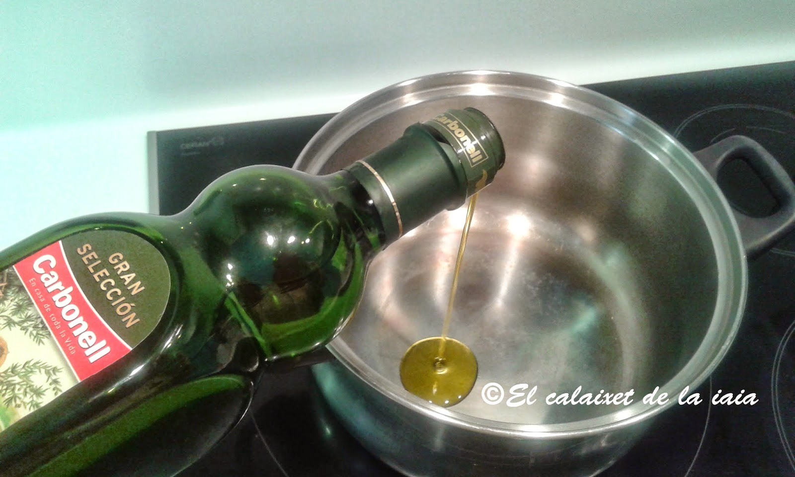 Ponemos a calentar el aceita en una olla al fuego, como tengo prisa y la de barro necesita el difusor que tarda un poco en calentarse, empiezo con la cazuela de acero y pongo a calentar el difusor mientas tanto.