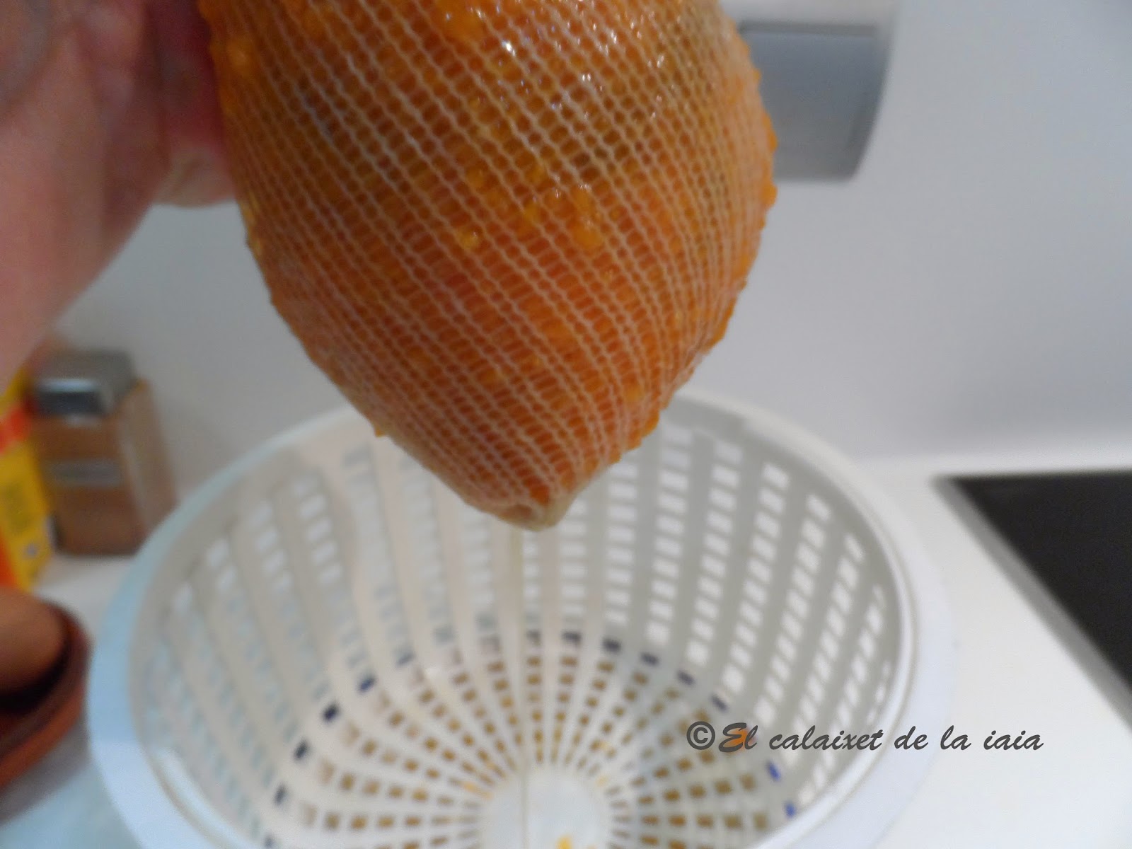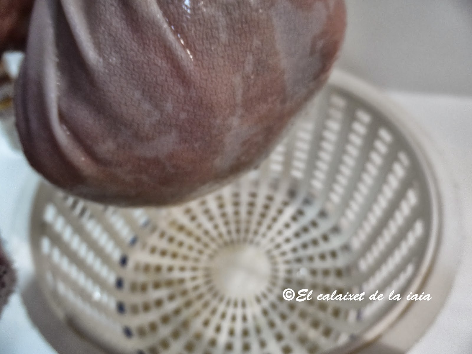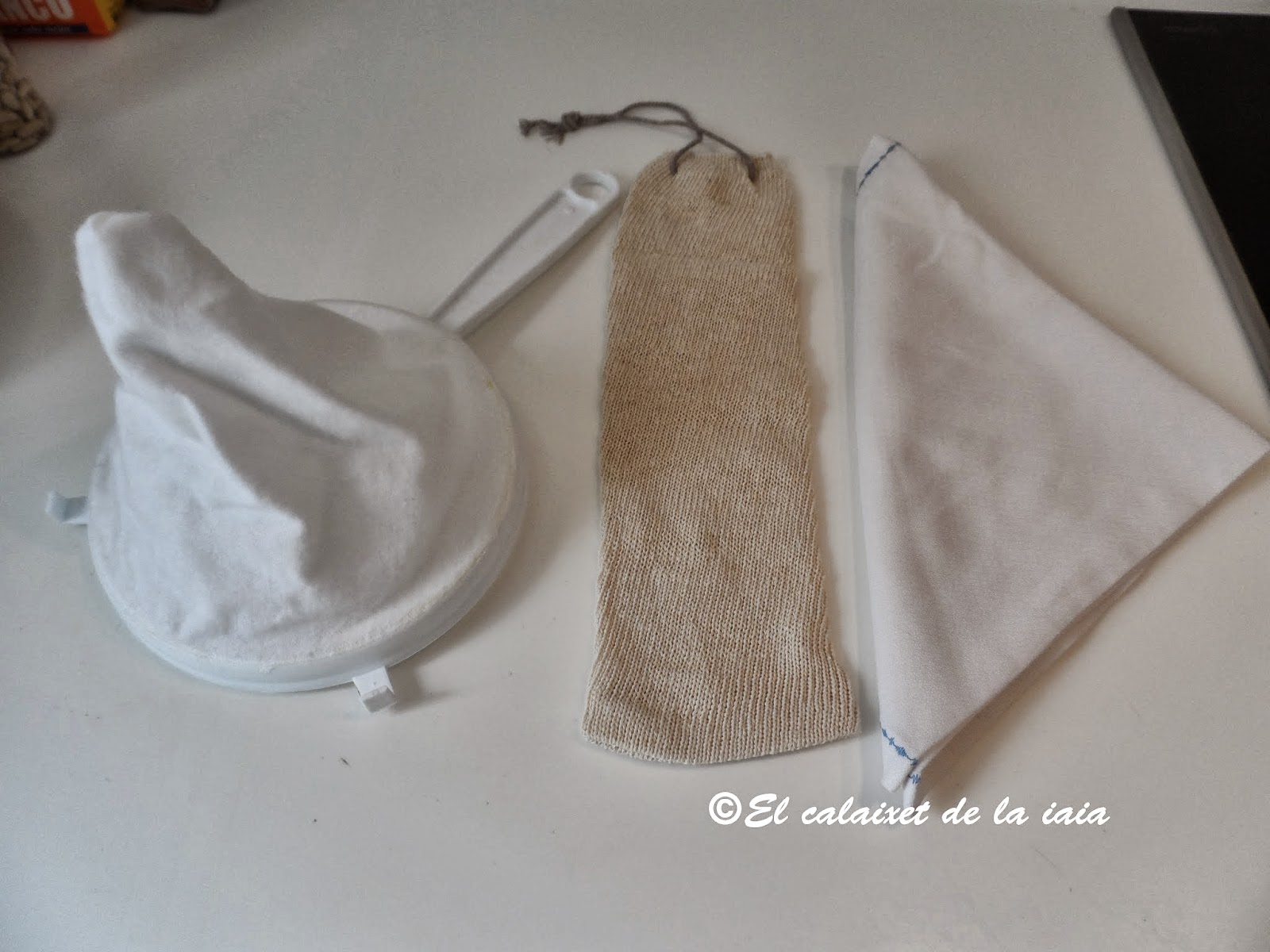 o bien el colador de tela y la dejaremos toda la noche apoyado sobre otro colador
