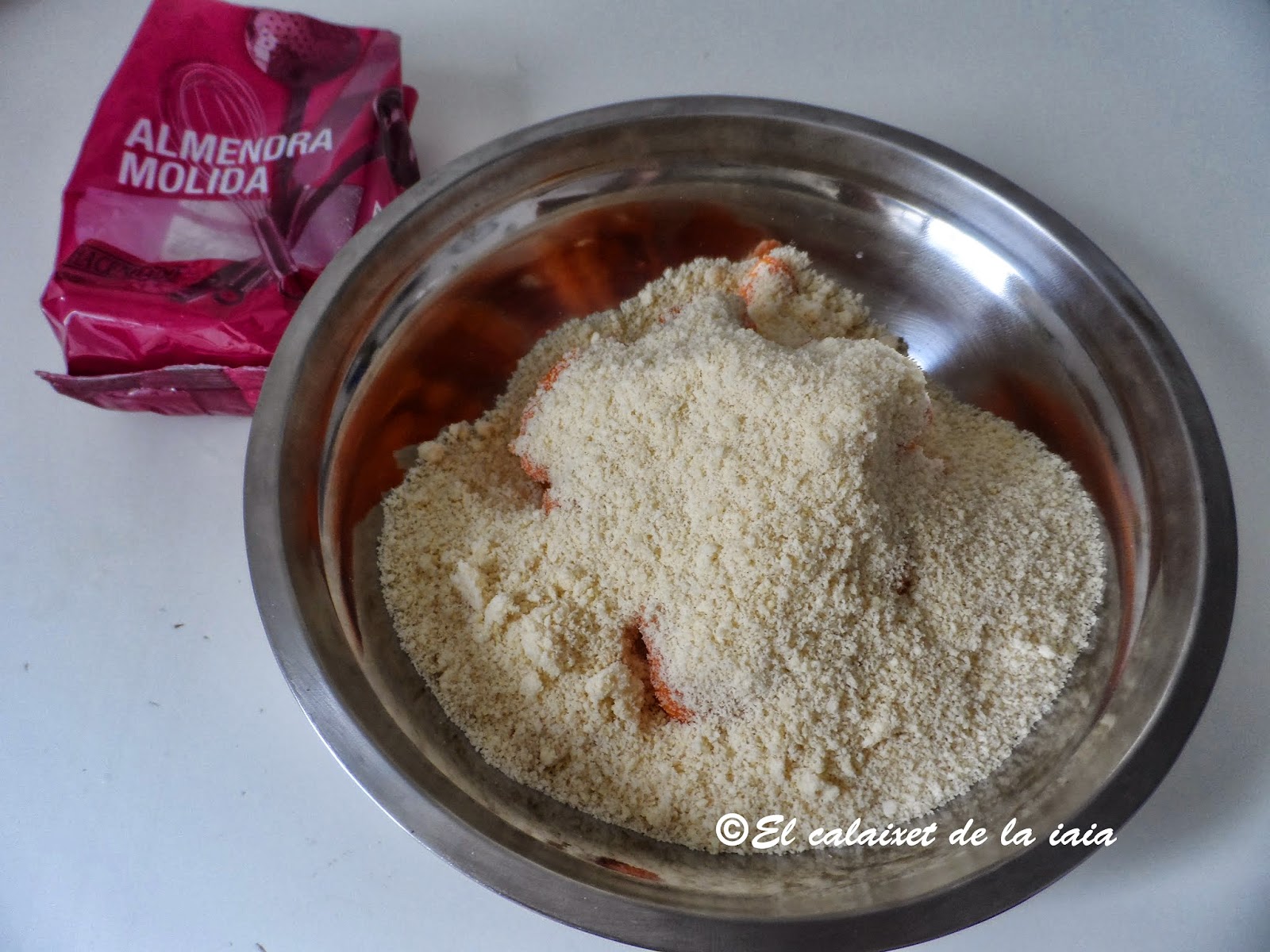 la pondremos en un bol y añadiremos la almendra molida y removemos