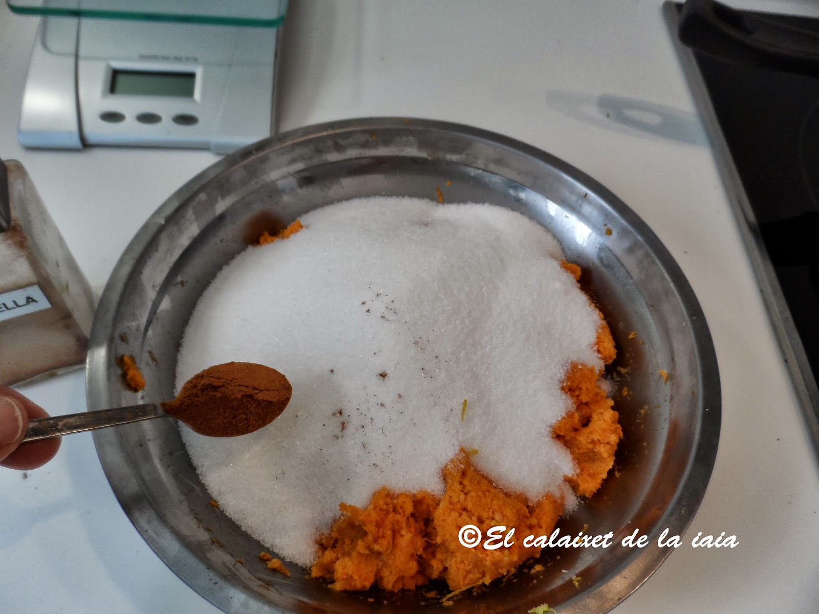 El arnadí se puede preparar imprescindiblemente con calabaza y se puede añadir (o no) moniato, rojo o blanco esto va a gusto del consumidor, a mi me enseñaron la receta con moniato rojo y así la hago. Es un postre típico de La Costera, de la Marina Alta y de La Safor, y de otros muchos pueblos, aunque principalmente de Xàtiva, donde es frecuente comerlo. En Gandía y alrededores también le llaman Carabassa Santa o sea Calabaza Santa, mi padre lo llamaba «caramull» que viene a significar cono, o parte superior de un pajar, por su forma cónica, o porción de alguna substancia que sobresale del recipiente que la contiene, y cuenta mi padre, que en su pueblo se hacía solo con calabaza sin boniato, pero desde que probó la receta de la bisabuela de Marita, lo prefiere con «moniato», a mi particularmente, me gusta mas la receta que voy a hacer hoy (con el boniato), y que se comía mucho antiguamente, ya que la calabaza es un vegetal con alto valor nutritivo, que sustituía la carne en la época en que estaba prohibida tomarla, como sabéis que ocurría tanto en cuaresma como en Semana Santa.
