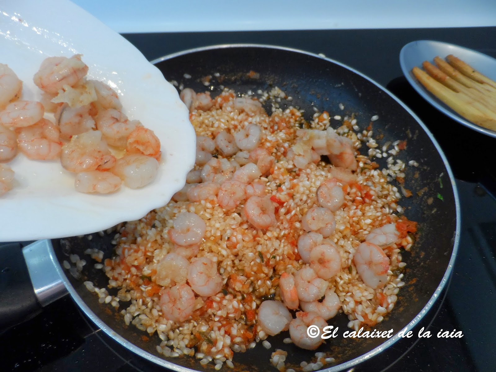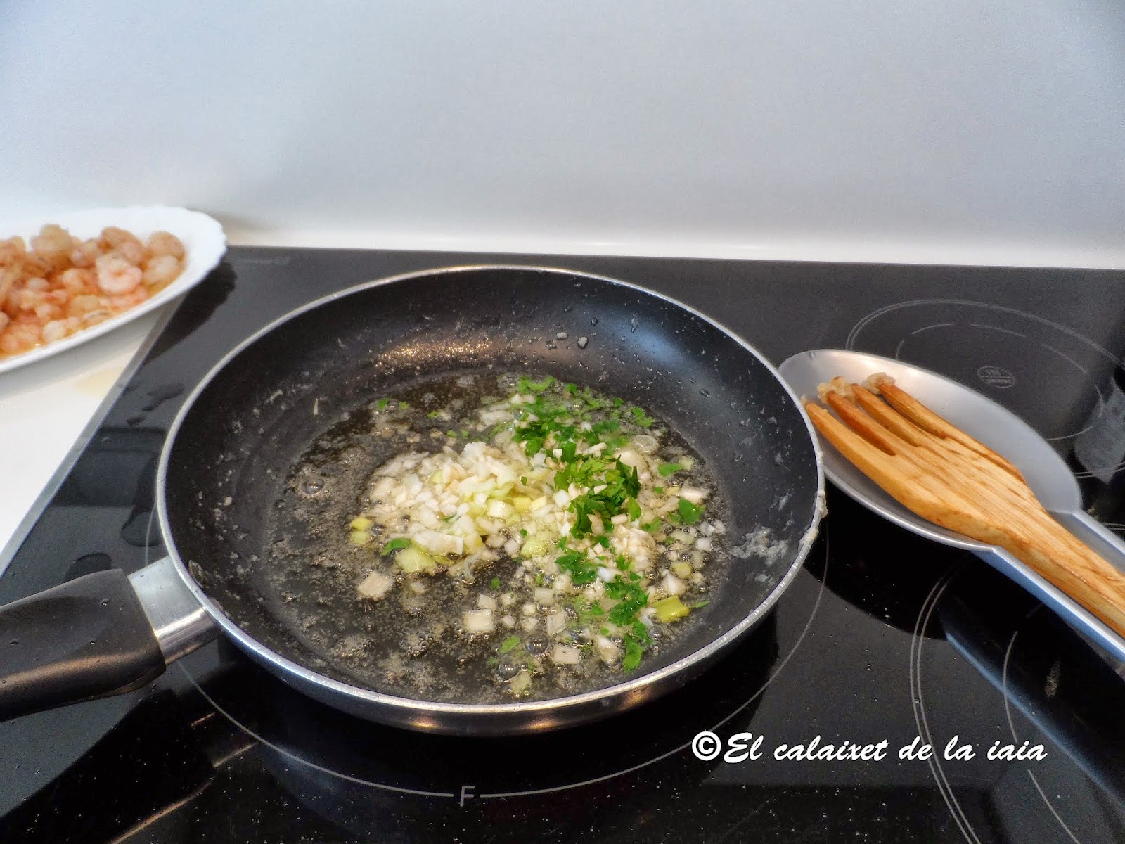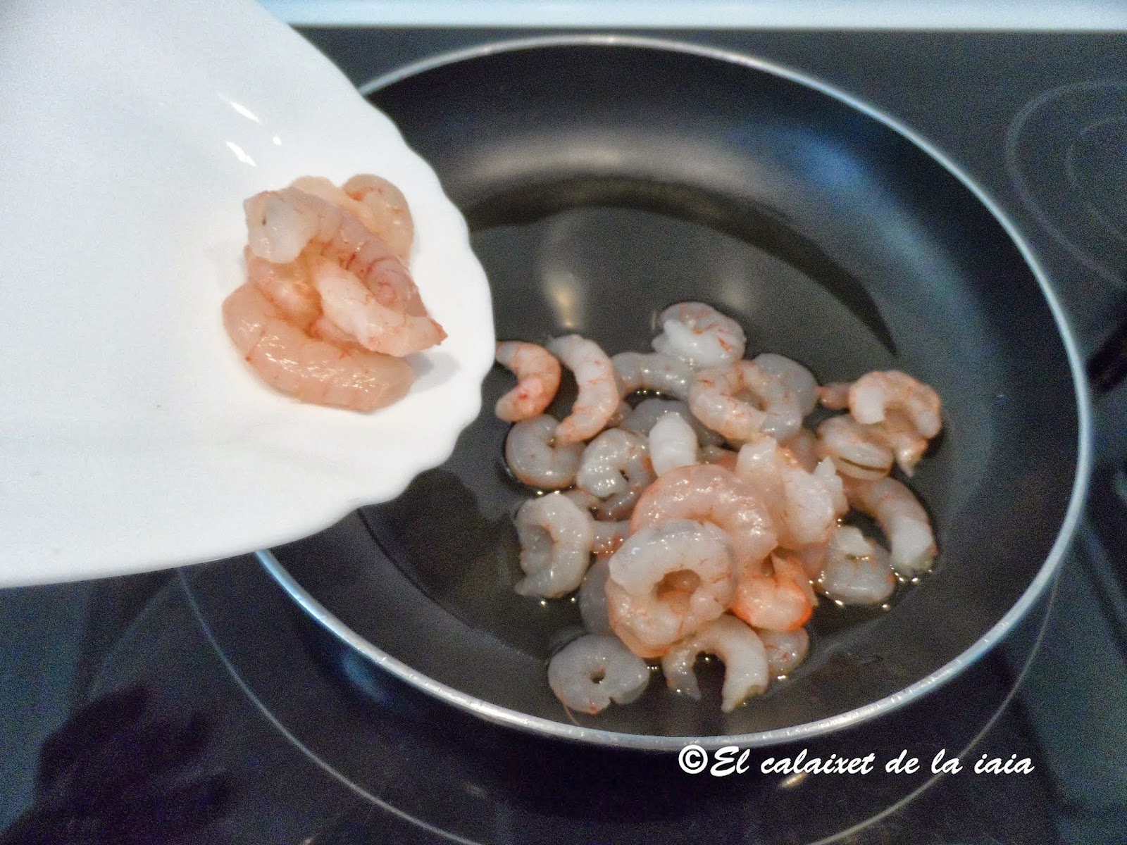 ésta vez los vamos a cocinar con unas gambitas sustituyendo la carne y os garantizo que os gustarán igual…o mas.