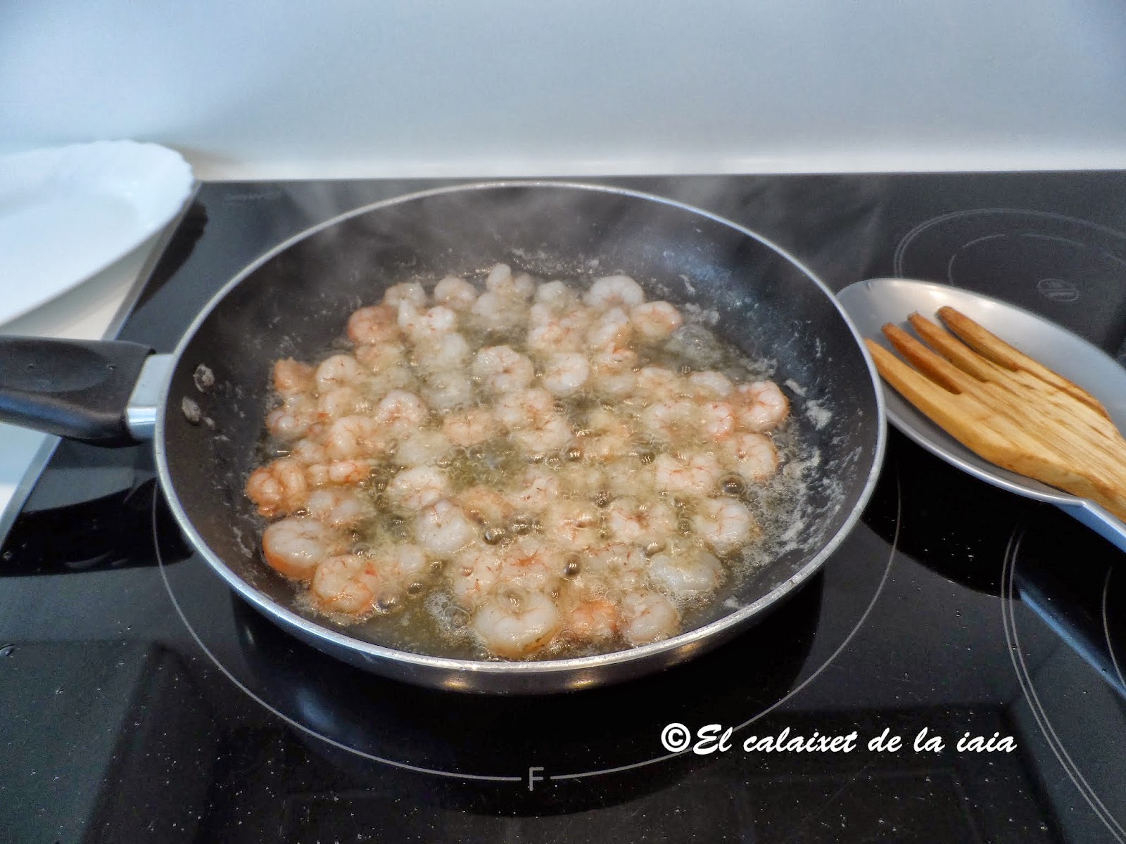 ponemos a calentar el aceite en la sartén y echamos las gambitas