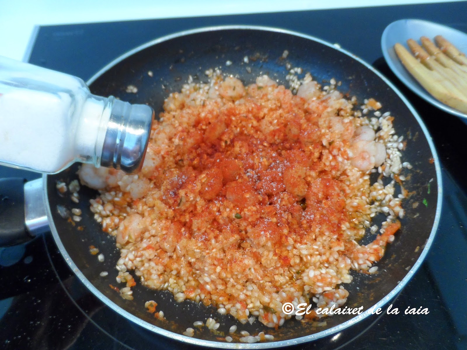 salaremos el pimiento por dentro teniendo en cuenta que al ser dulce, hemos de poner un poco mas de sal de lo habitual para que no nos quede el arroz soso