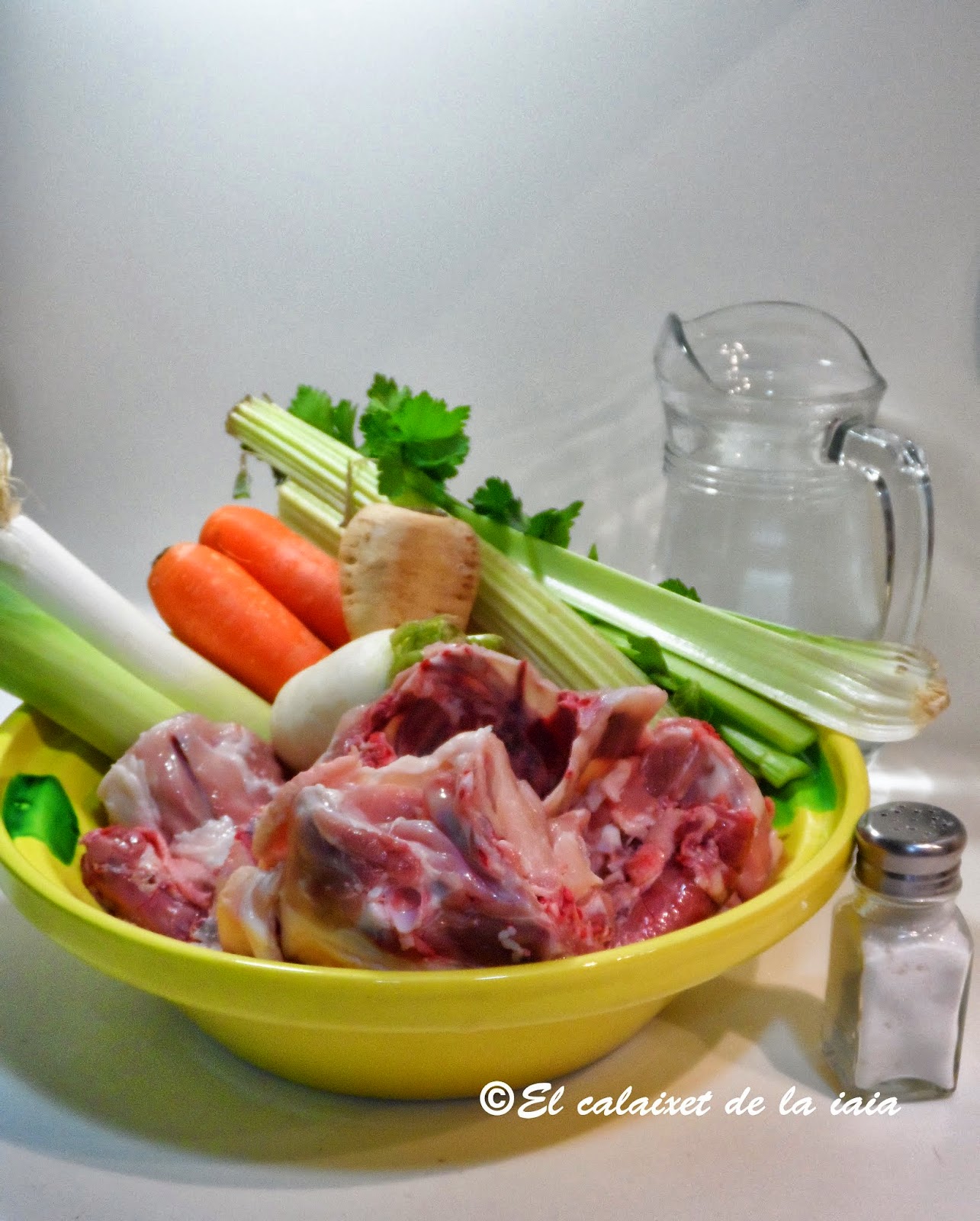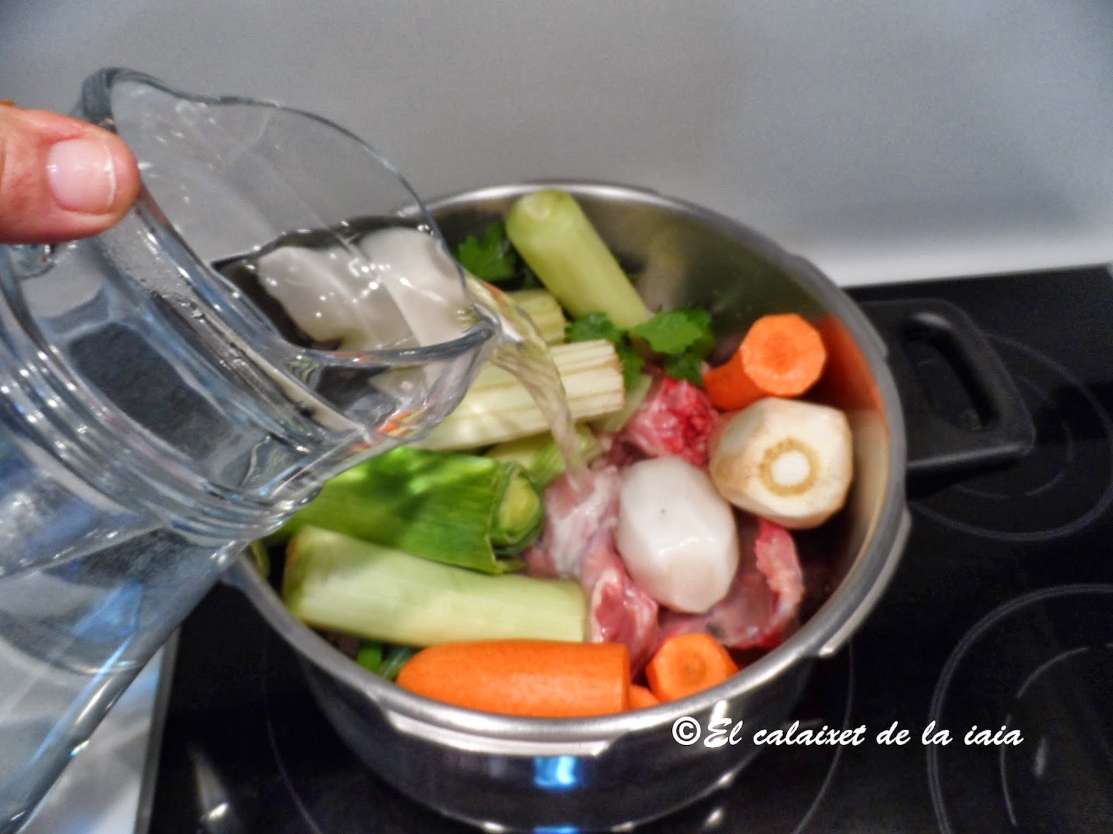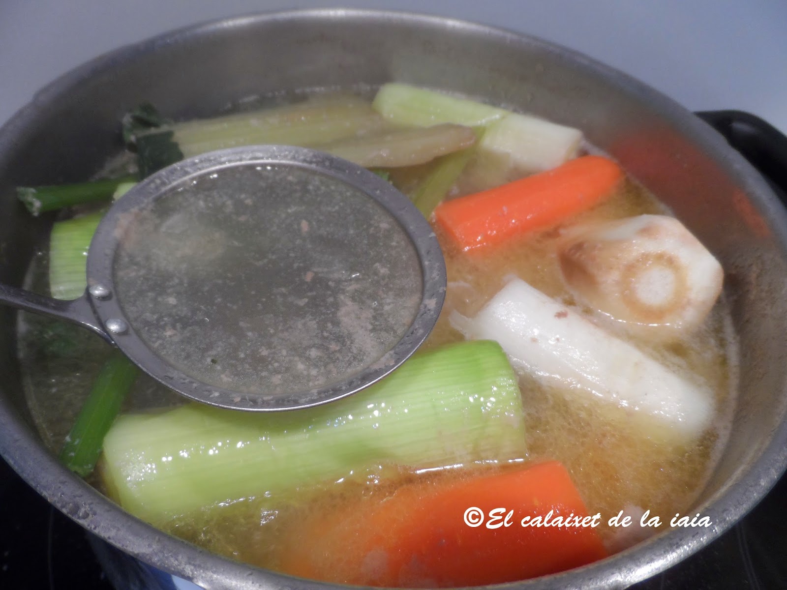 Podéis hacer un fondo blanco, usando solo pollo, pero en mi opinión, las verduras aportan color, sabor y vitaminas, por lo que en casa, toda la vida, se ha hecho como paso a explicaros.
