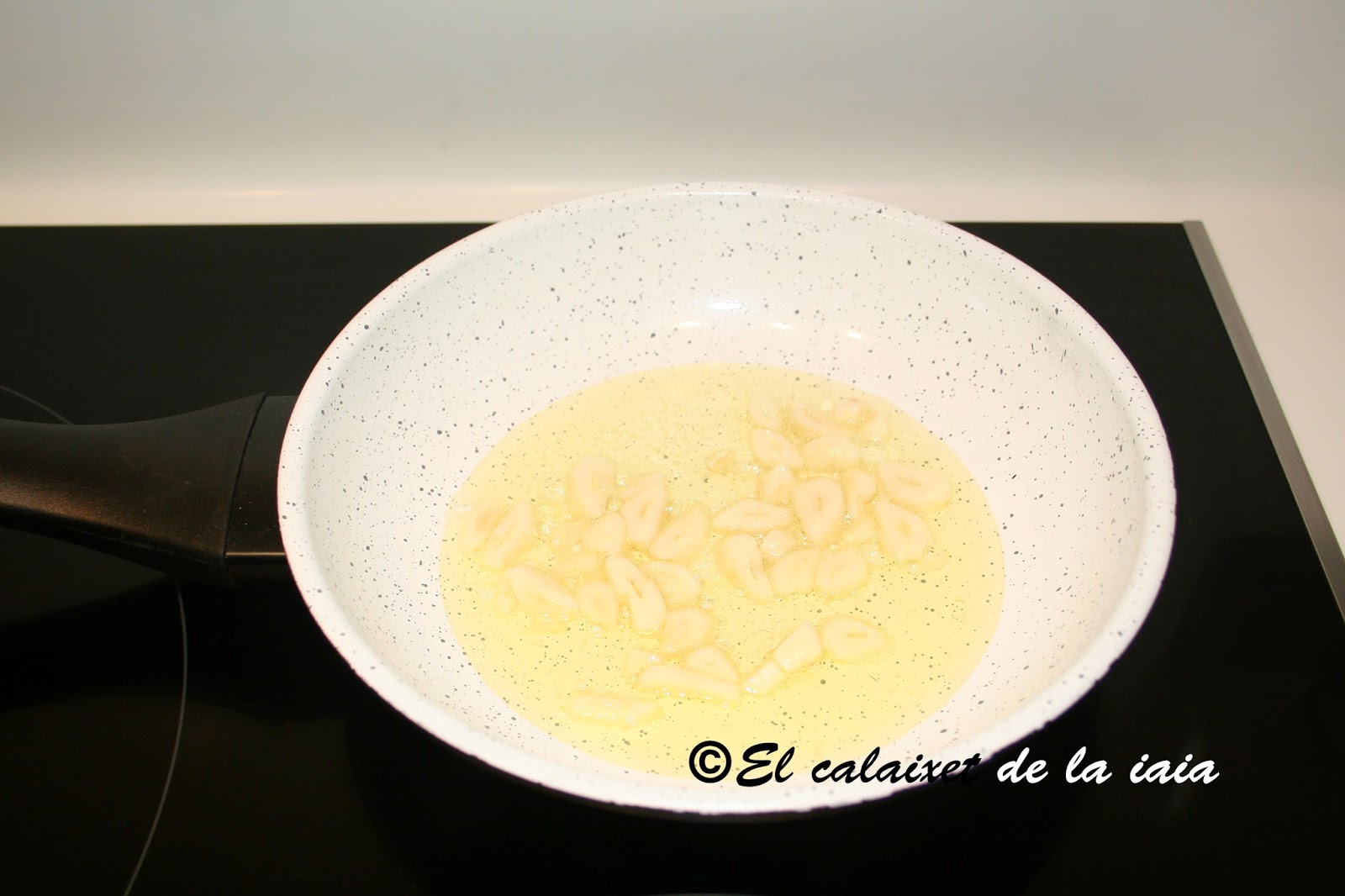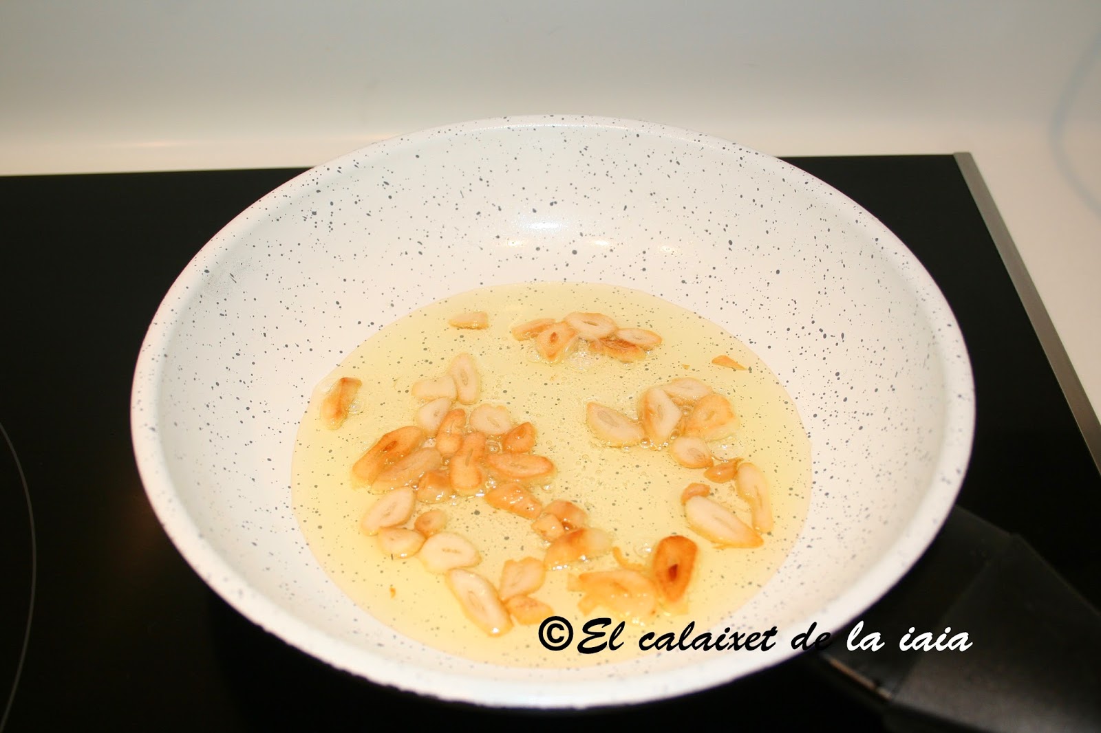 y dar unas vueltas teniendo mucho cuidado que ni se queme el pimentón ni los ajos ya que ambos amargarían y nos estropearían el plato