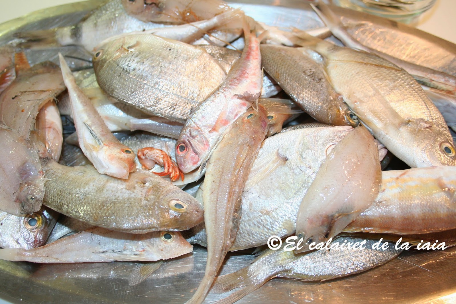 Aprovecho las visitas al mercado Central de Valencia o al mercado de Russafa o al del Cabanyal para comprar la morralla, que no es otra cosa que pescado de roca, en el mercado el pescado es muy fresco y directo de la lonja. Otras veces, aprovecho las ofertas de merluza entera y pido que quiten la espina central y partan la cabeza por la mitad, voy congelando las espinas y cabezas y cuando tengo algunas, hago el fumet añadiendo algún hueso de rape, con el tomate la cebolla y el laurel, al que añado algún puerro y unas zanahorias por ejemplo.