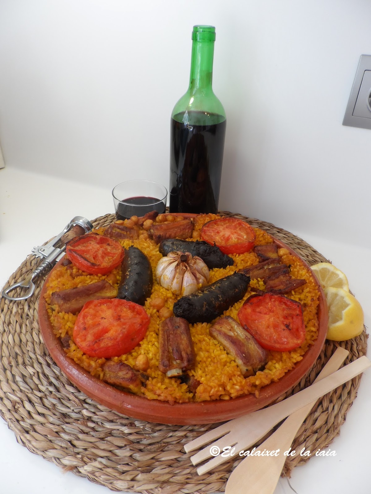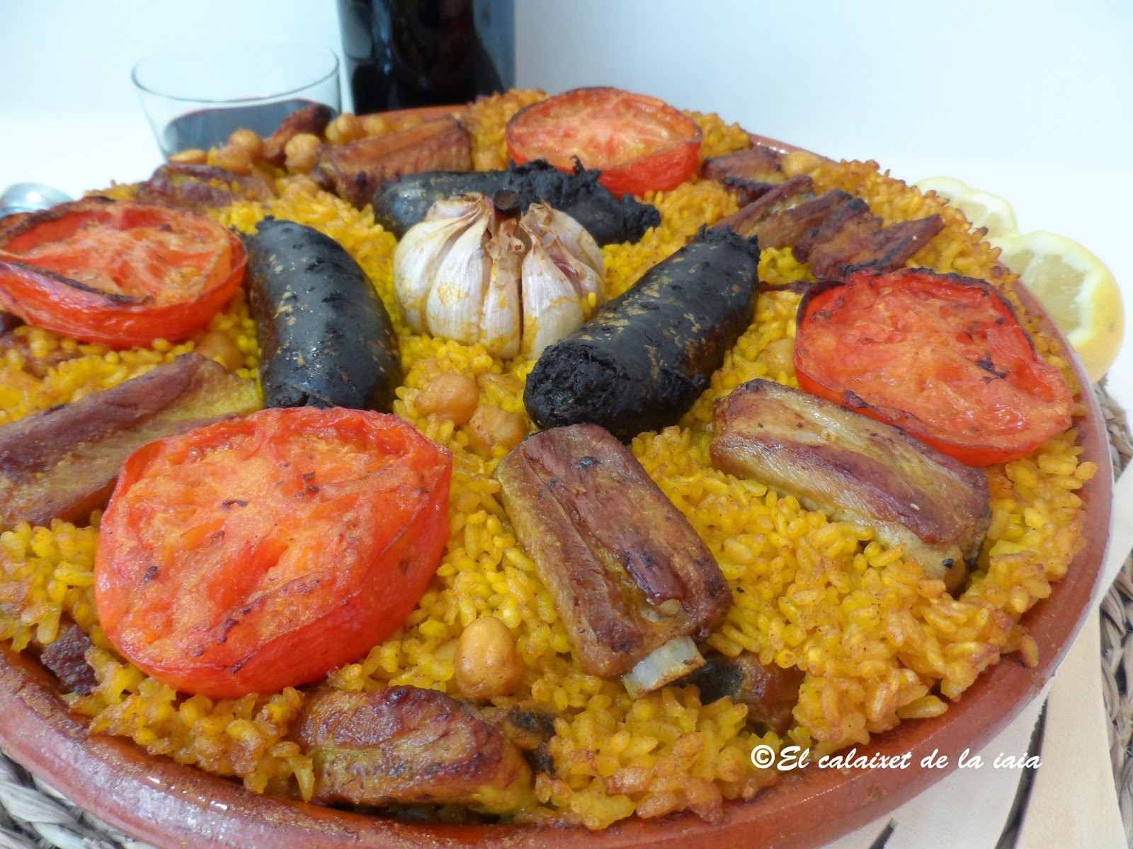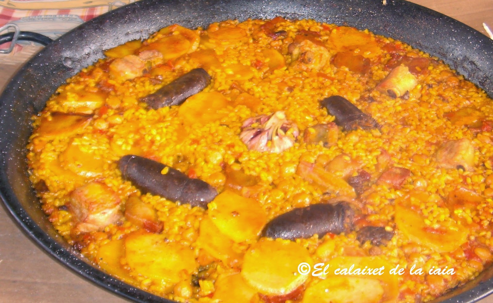 Pero hoy vamos con el arroz al horno tradicional de mi iaia y cocinado en cazuela de barro baja y ancha, que pude comprar en «l’escuraeta», porque la anterior se me rompió, pero tendré que ir de nuevo en Abril/Mayo, (para el Corpus), en cuanto pongan de nuevo «l’escuraeta»en «la Plaça de la Reina» a los pies de la Catedral, porque esta cazuela,se me queda pequeña.