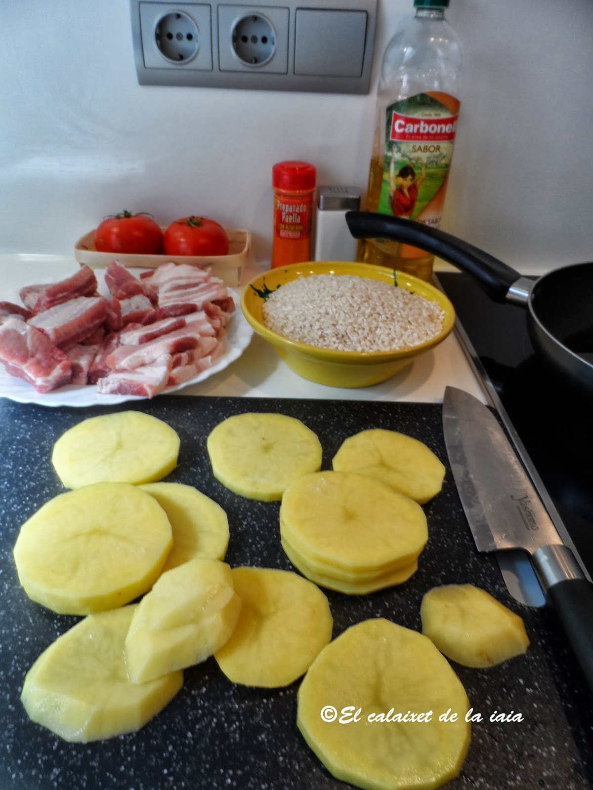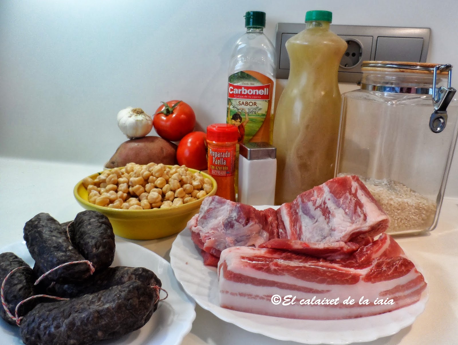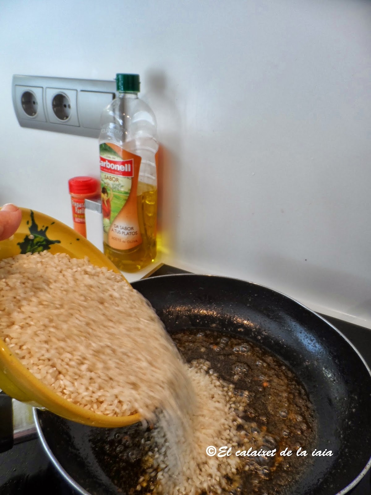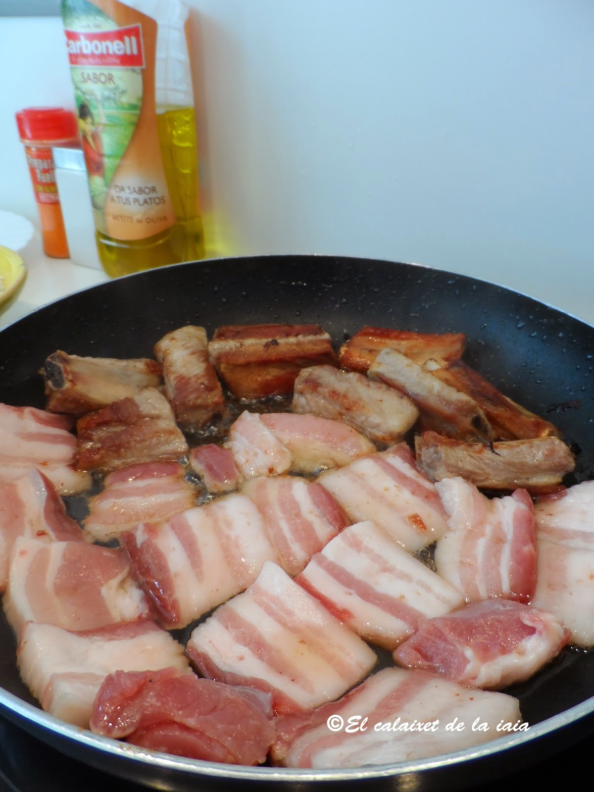 Pero hoy vamos con el arroz al horno tradicional de mi iaia y cocinado en cazuela de barro baja y ancha, que pude comprar en «l’escuraeta», porque la anterior se me rompió, pero tendré que ir de nuevo en Abril/Mayo, (para el Corpus), en cuanto pongan de nuevo «l’escuraeta»en «la Plaça de la Reina» a los pies de la Catedral, porque esta cazuela,se me queda pequeña.