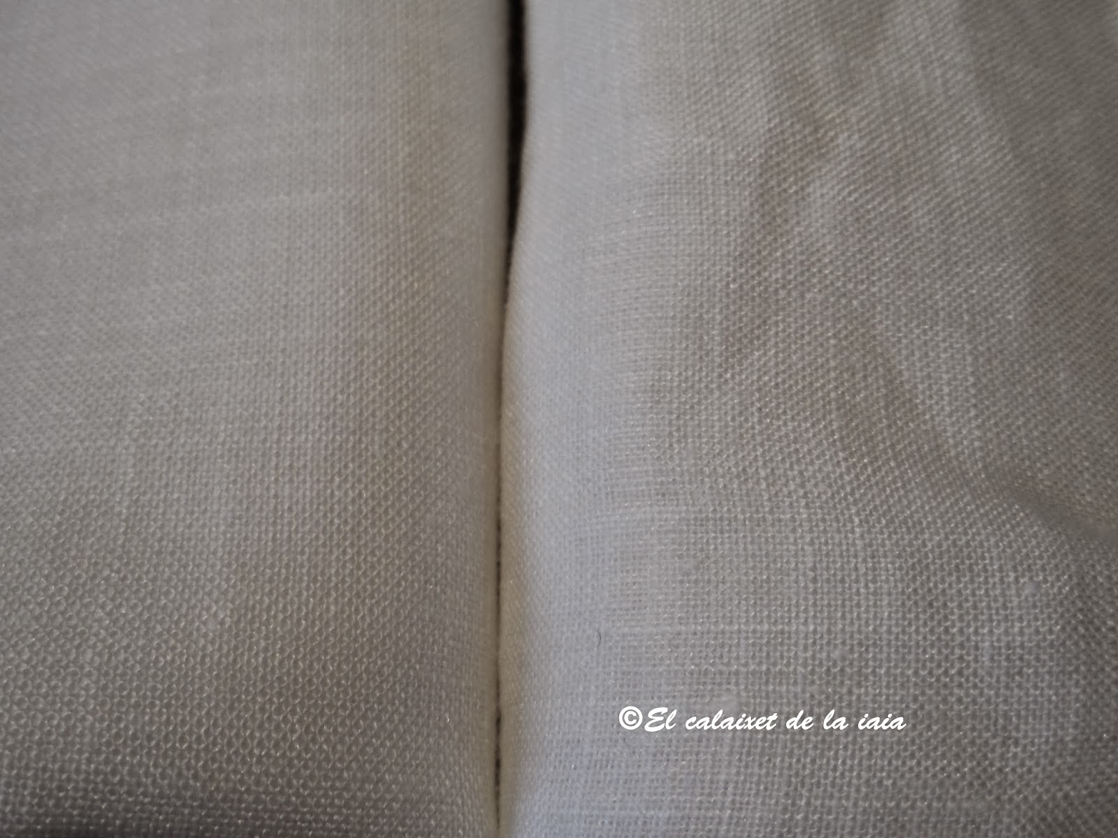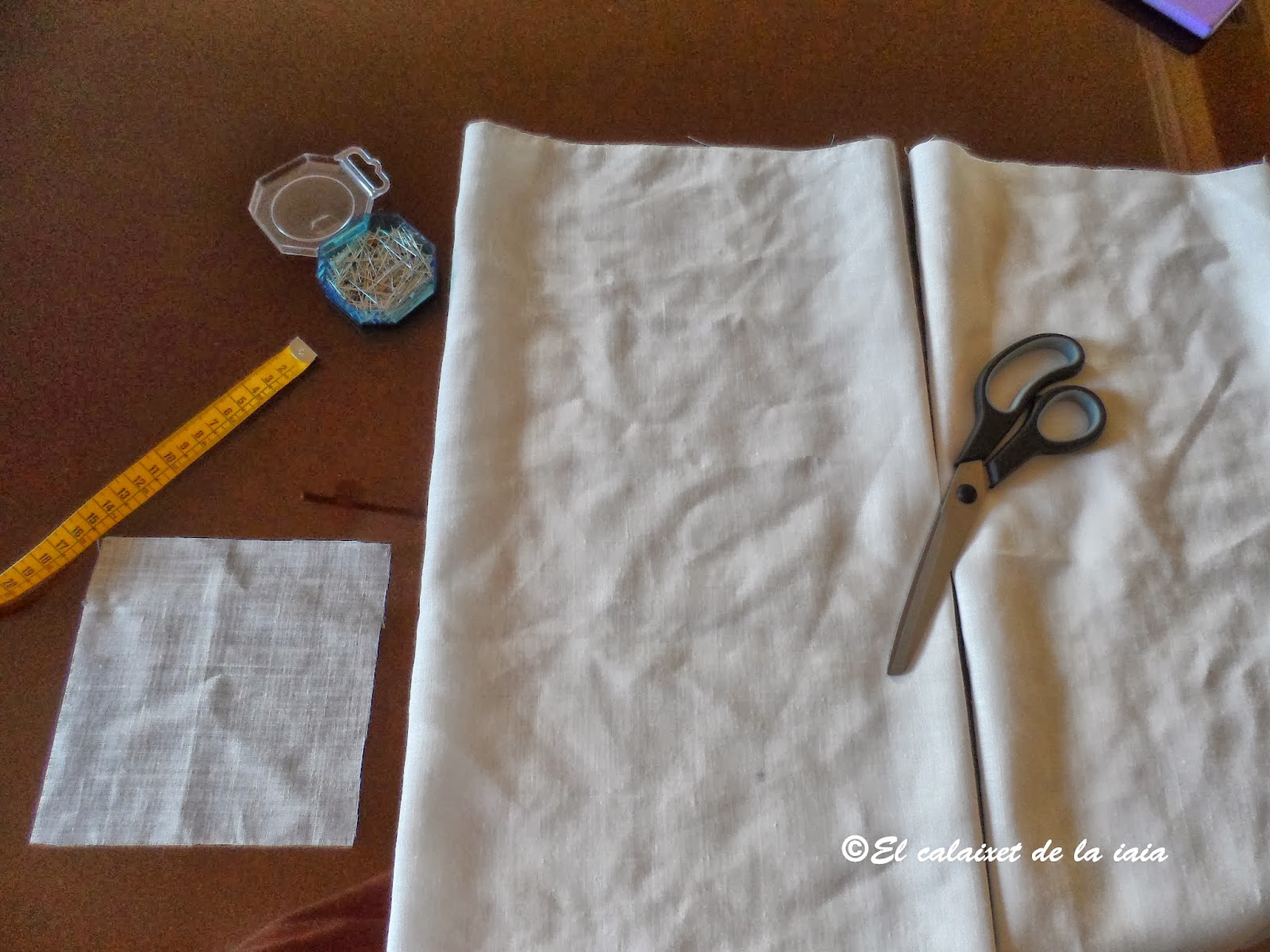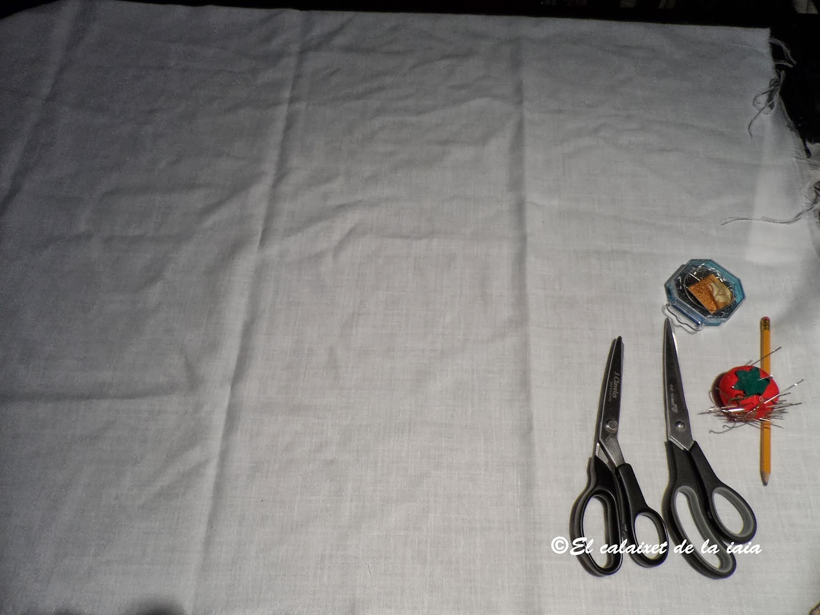 Lo primero contar con el material adecuado, tarea nada fácil si queréis ahorrar algún euro, porque el lino es caro, caro (a ver… que no cuesta como un espolín claro, jejeje). Fácilmente ronda los 45€ el metro, así que si lo podéis conseguir de retales o rebajas… os lo aconsejo.