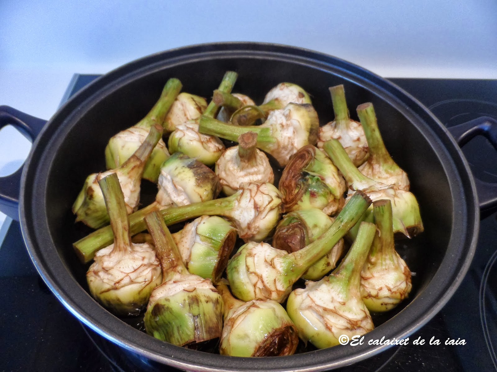 Como estamos de pleno en la temporada de la alcachofa, (las de Benicarló son buenísimas) os voy a explicar otra de mis maneras de prepararlas, la receta de la iaia y de mi madre, una receta muy muy básica, sin grasas y listas en 30 minutos en cazuela normal.